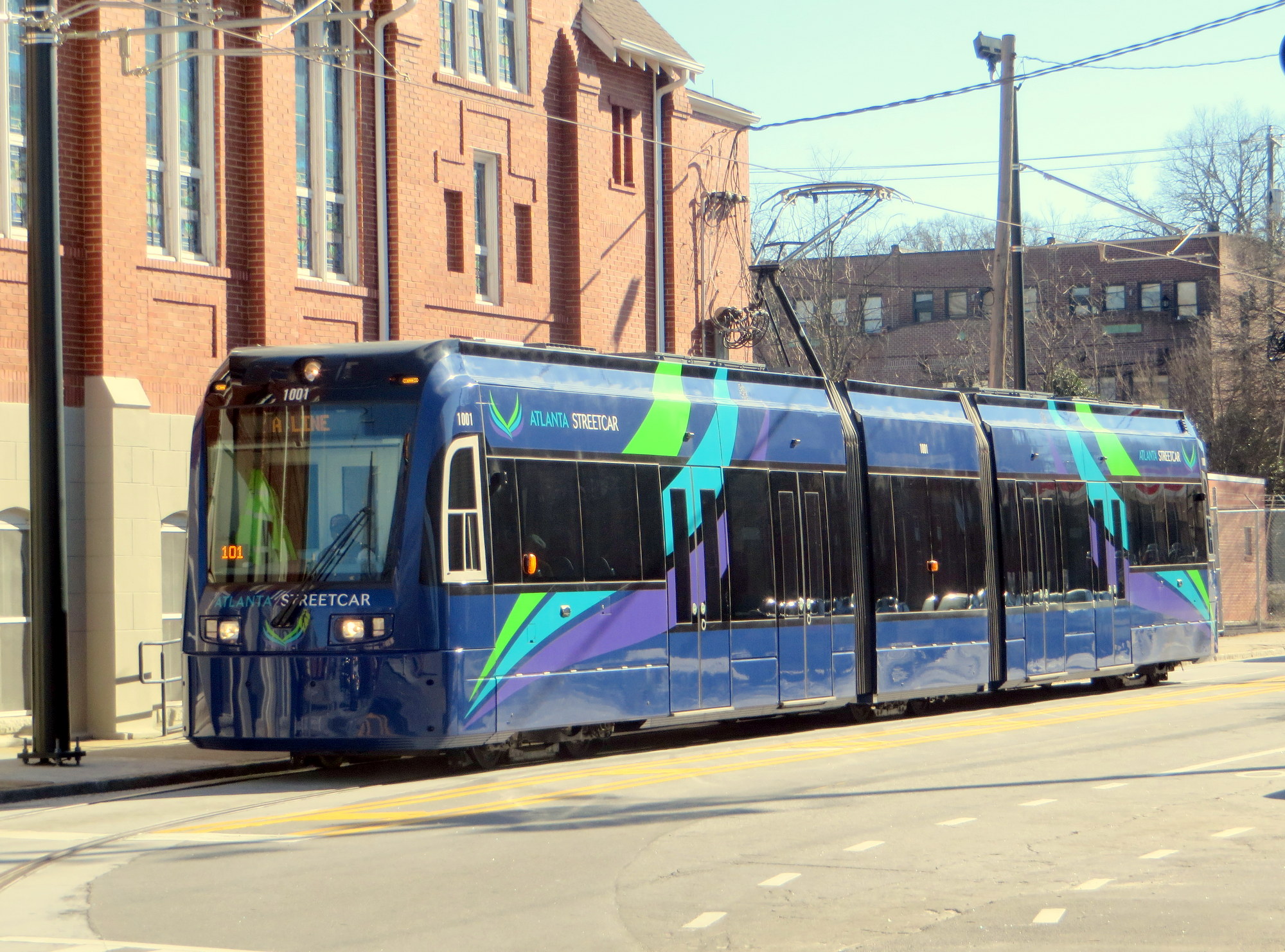 The Atlanta Streetcar opened on December 30, 2014, so I got to ride it a week after its launch. The Atlanta Streetcar, intended as the first phase of a larger system, connects downtown with the near east side, an area known as the “Old Fourth Ward” which includes the Dr. Martin Luther King Historical Site (where the civil rights leader was born, grew up and preached at his community church). The route, a one-way loop, similar to Cincinnati’s project, is only 3.7 kilometres long (2.3 miles); streetcars currently run every 10-15 minutes. For the first three months, the streetcar is free. Atlanta ripped out its streetcar system in the 1930s and after the Second World War; the last streetcar operated in the Georgia capital in 1949.