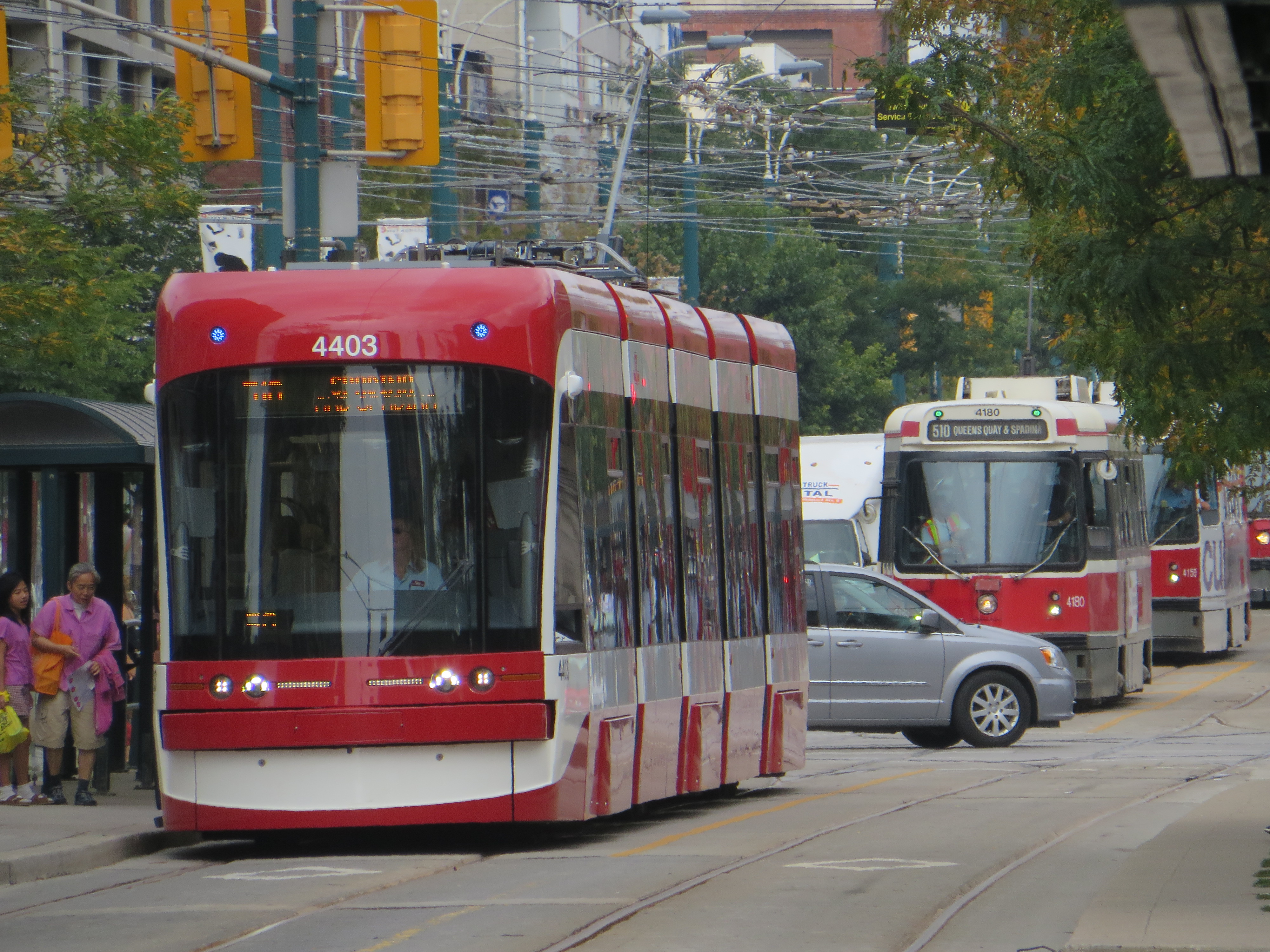 The entire bus fleet is accessible, though not all bus stops are (the TTC requires a solid, concrete or asphalt place to deploy the ramp or lift, and room for the passenger to board; some suburban stops without a bus pad, or narrow urban sidewalks make loading a passenger in a wheelchair difficult). The first four low-floor streetcars are operating on Spadina Avenue, 200 more are still to be delivered. By now, the Spadina, Bathurst and Harbourfront cars were to have been fully-equipped with the new trams.