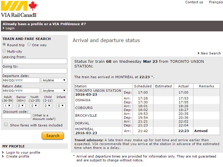 VIA Rail service will be slower between Toronto and Montreal once they will cease using the CN tracks by rerouting through Peterborough and Ottawa. This will require to rebuild the winding abandoned tracks east of Peterborough that will take up to nearly 8 hours between those two major cities from the current 5 hours.