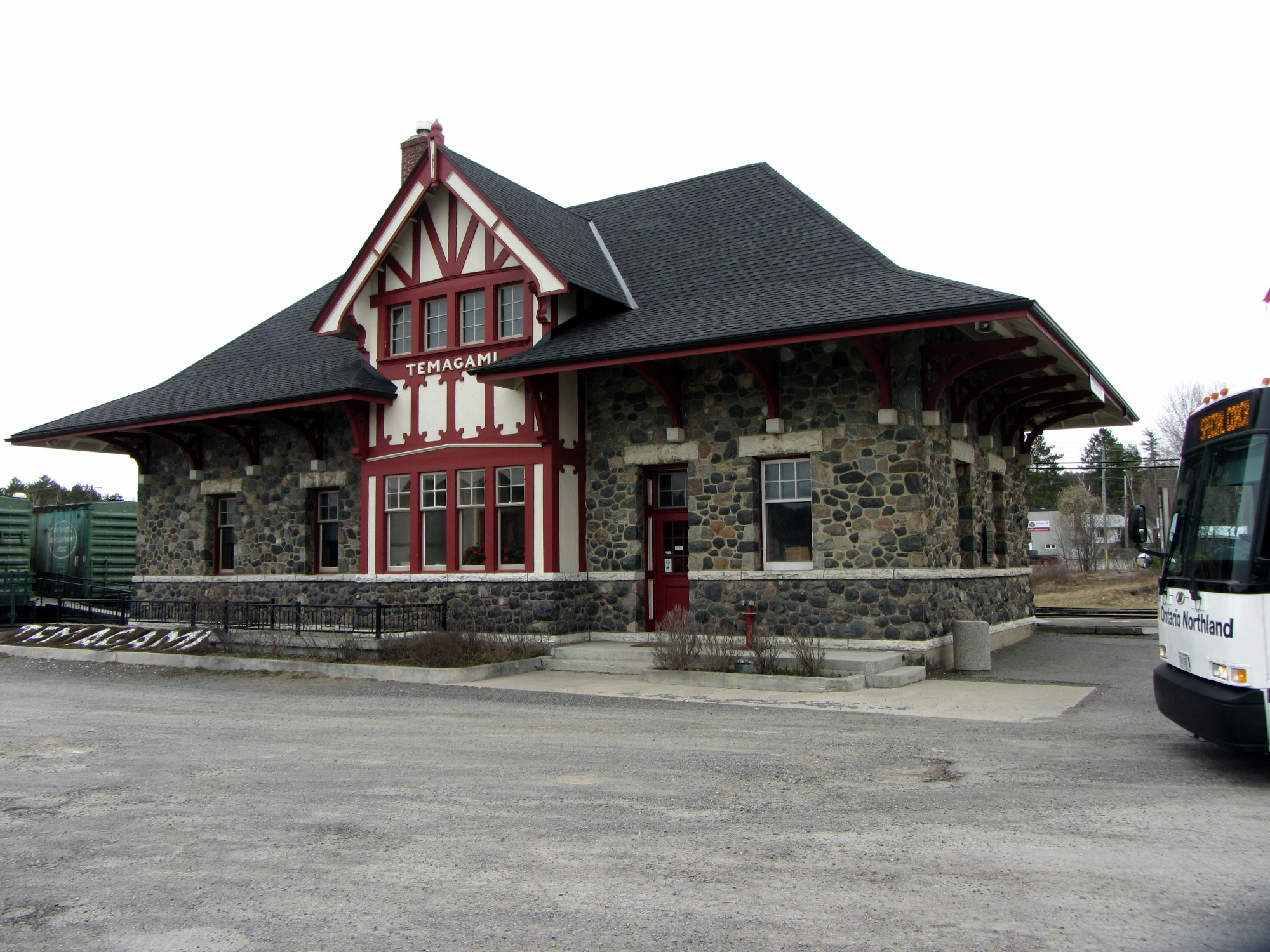 Temagami Station, May 2, 2012. On our way north, we were bustituted between North Bay and Englehart as the southbound train hit a moose. We rejoined the train at Englehart.