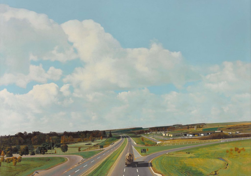 Chambers became well known for photorealism in his work. The scene in 401 Towards London No. 1 is slightly askew, as if this was a Kodachrome snapshot.