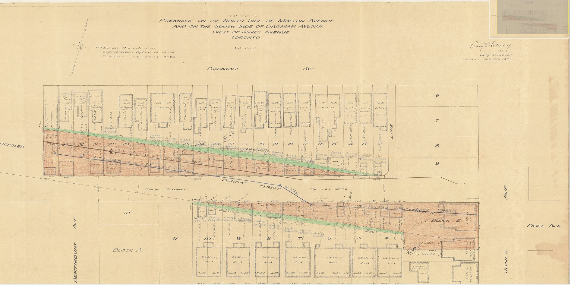 Though Dundas Street extended east of Broadview for one block to Boulton Avenue, it was as a narrow residential street, and did not continue beyond (this is why the Harbord Streetcar took a convoluted route via Dundas, Broadview, and Gerrard to get to Carlaw and Pape Avenues). New roadways were planned to expand traffic access to Downtown Toronto from the burgeoning suburbs, including a new extension of Dundas Street east to Kingston Road.