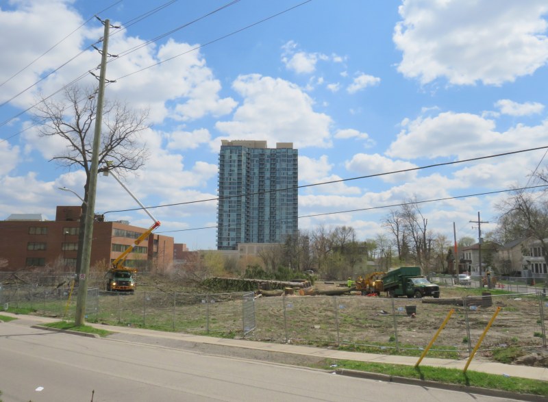 Earlier this April, contractors hired by Metrolinx cut down trees on its Downtown Brampton property, where twelve houses once stood. The work, originally scheduled for the week of March 22, did not begin until April 12.