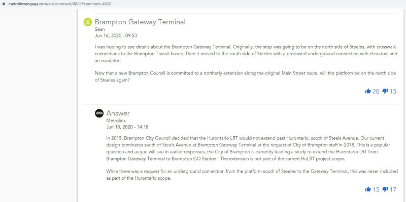 Since April 2019, Brampton has been consistent with its requests for a north side stop, citing safety concerns, passenger convenience, and its re-commitment to a Main Street alignment (for which a new EA is ongoing). However, with the approaching Financial Close of the contract for construction and operation of the LRT with the desire not to reopen the project for any further changes, provincial officials reject each request from the city. I bolded specific dates to help keep track of the timeline through 2019 and 2020.