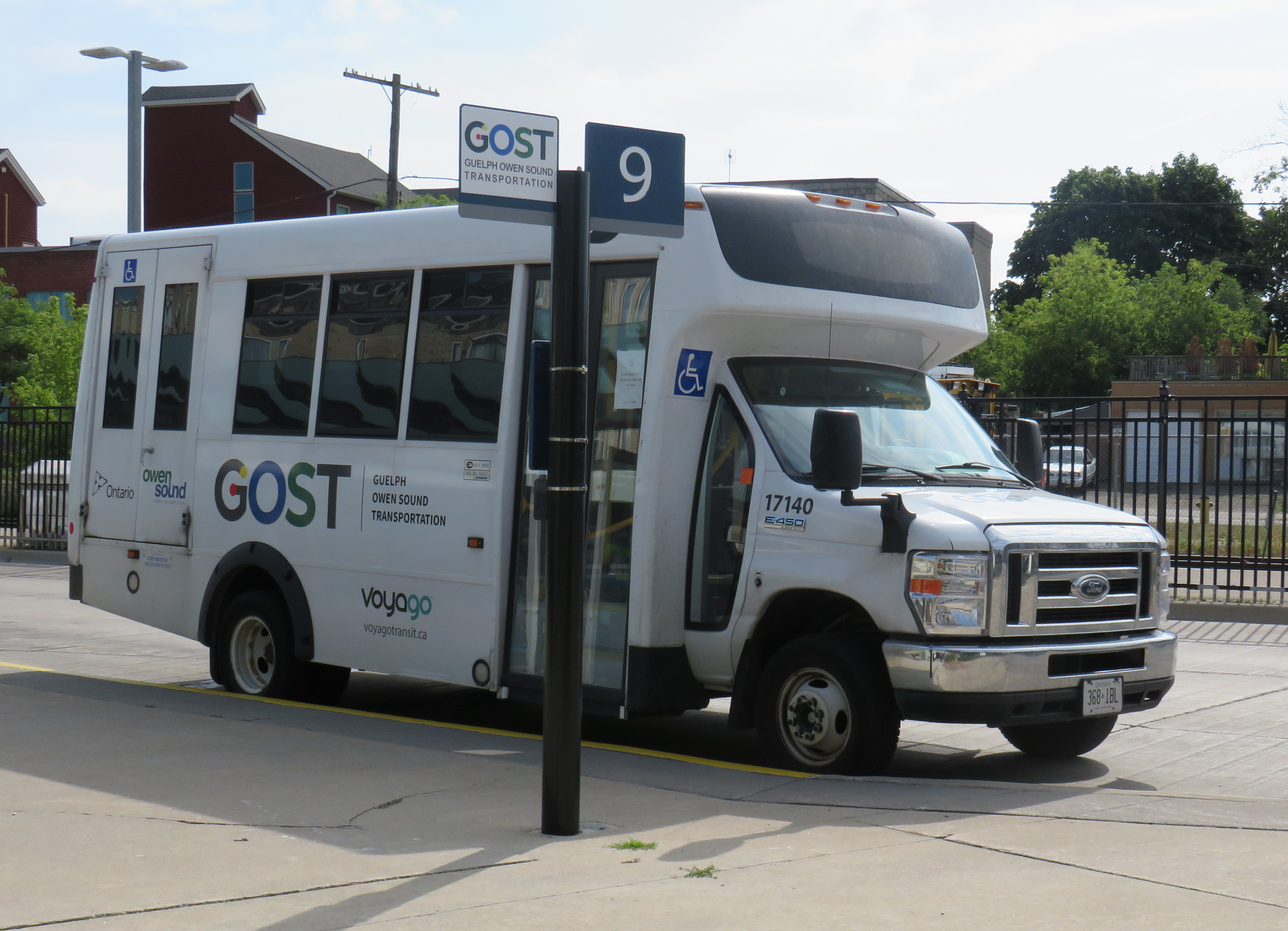 The GOST minibus service operates two round trips, seven days a week, between Guelph and Owen Sound, with stops in Elora, Fergus, Arthur, Mount Forest, Durham, Williamsford, and Chatsworth. Except for Fergus, all stops are located in or near each town’s commercial centre. The service is funded by Owen Sound and a provincial grant, and operated by London-based Voyago (which operates several other rural services in Western Ontario).