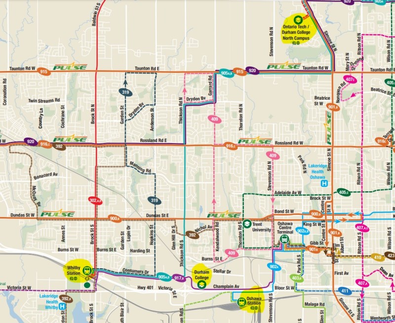 The connection at Oshawa Station to Durham College’s main Oshawa Campus makes sense only when transferring from a VIA Train, or from GO Transit Route 88 from Peterborough and Clarington.