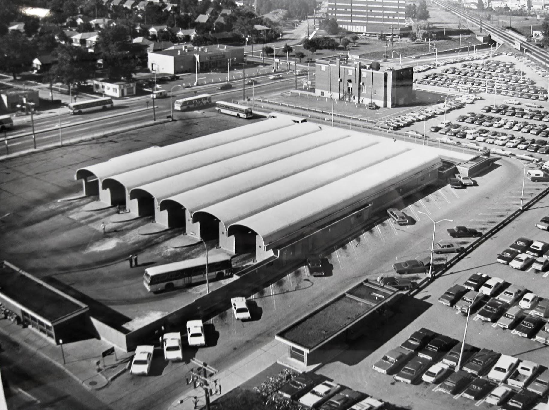 From 1968 to 1980, Islington Station was the Bloor-Danforth Line’s western terminus, with buses branching out to points all over Etobicoke. The bus terminal boasted six bus bays, each with its own driveway. One of the six platforms was dedicated for Gray Coach services, which included an express bus to Pearson Airport.