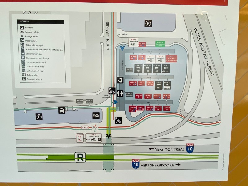 At Panama Station (named for a nearby street), the main transfer point between RTL buses and the REM (along with several local Exo buses to Saint-Constant and Delson), the disconnect between the separate transit facilities is apparent. The Panama Terminal is gigantic, with dozens of connecting buses.