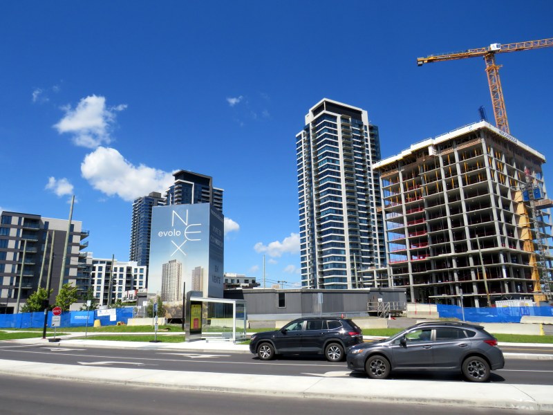 Despite the car-centric nature of Quartier DIX30, particularly the older southern half, there are opportunities for new urban development. On the east side of the REM station, this is already happening.