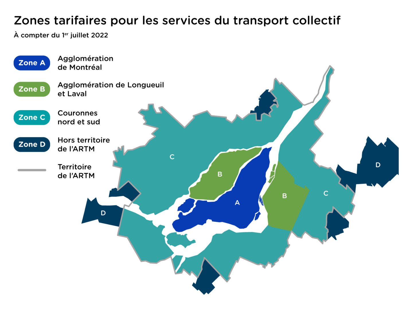 Ahead of REM’s opening, the Autorité régionale de transport métropolitain (ARTM), a provincial transit agency similar to the GTHA’s Metrolinx, developed a new simplified fare zone scheme that corresponds to the local transit operating regions in Greater Montreal.