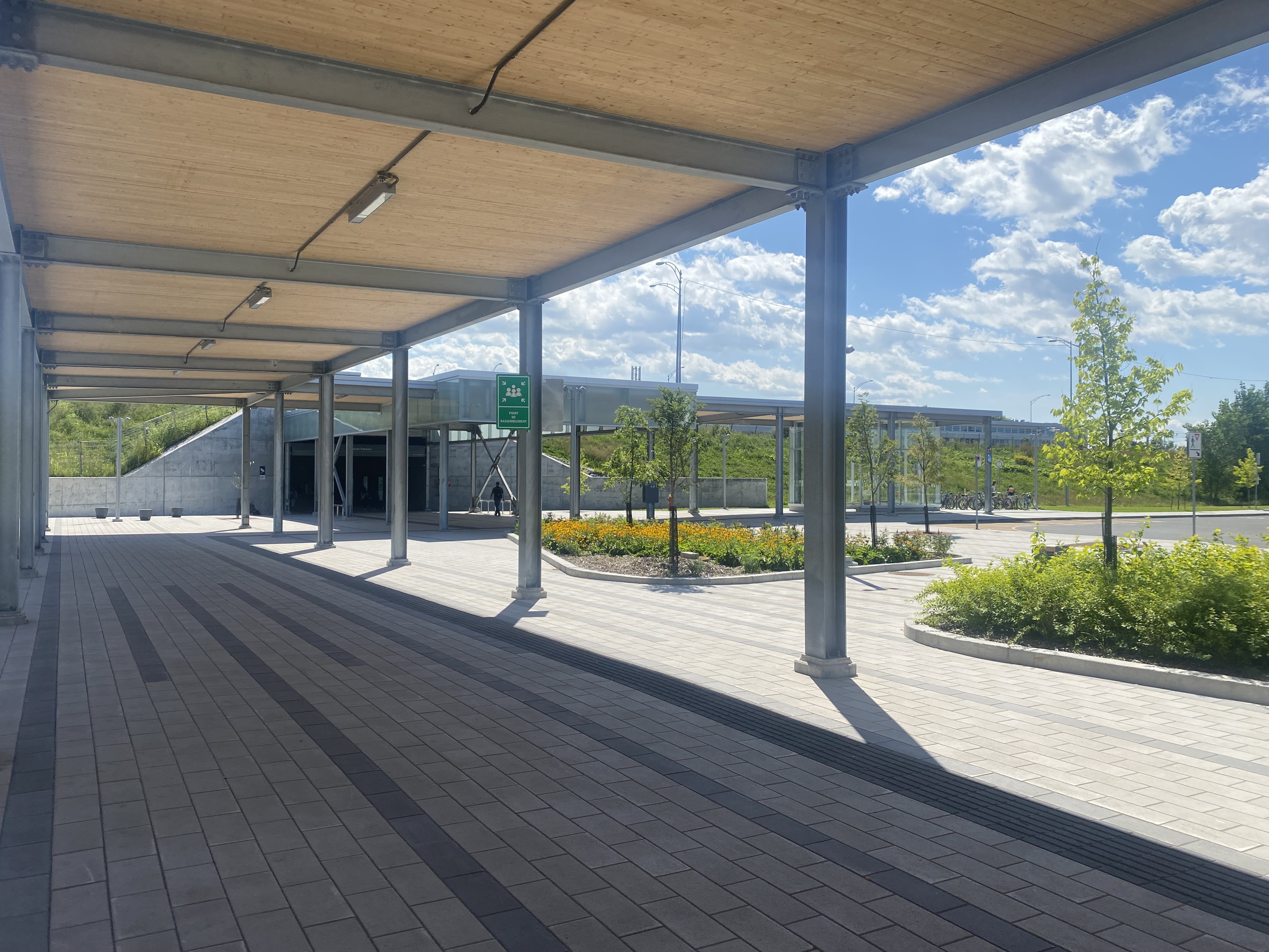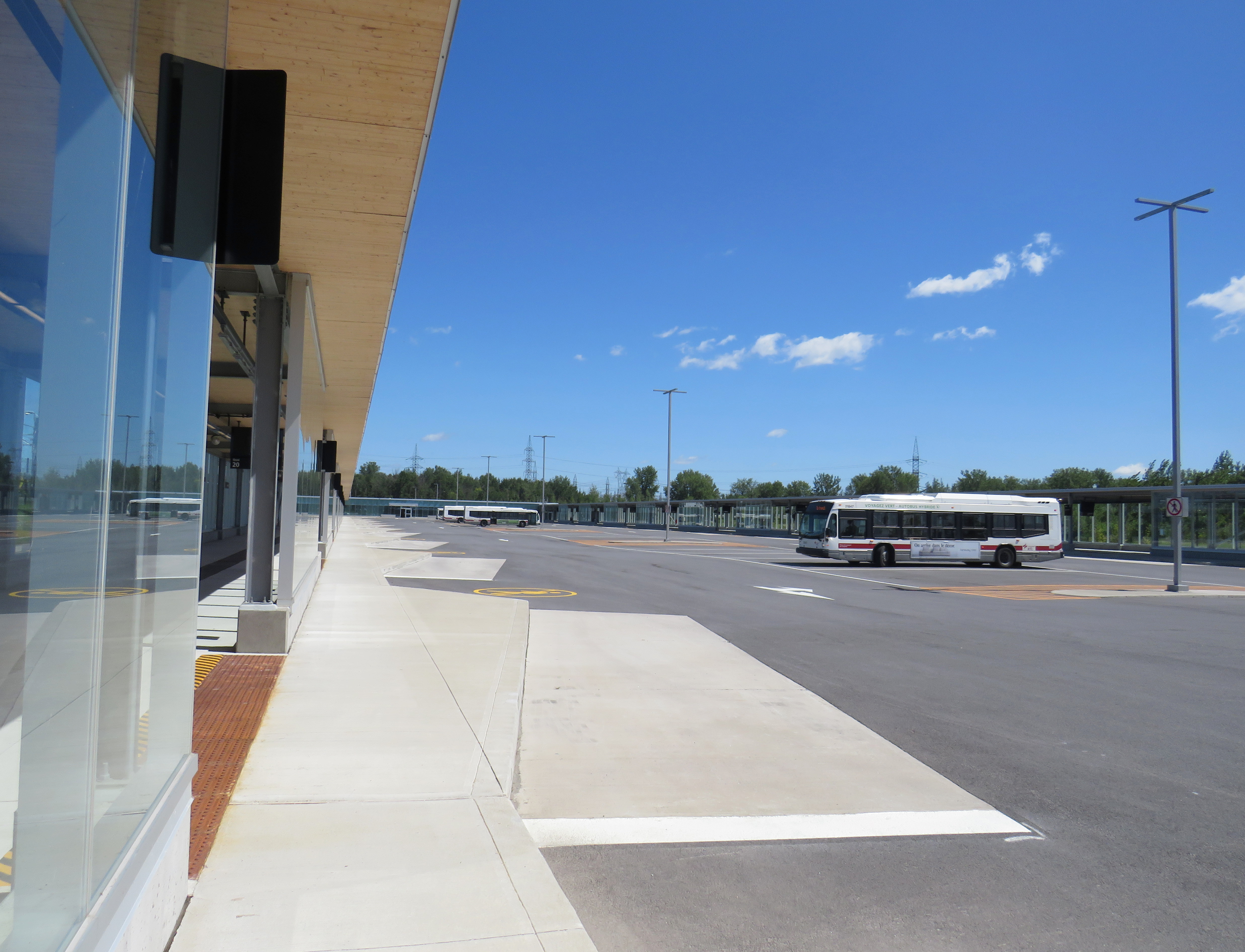 There is only one passage between REM trains and buses: via an outdoor breezeway, which, unlike Brossard, is covered to protect from the summer sun and from rain.