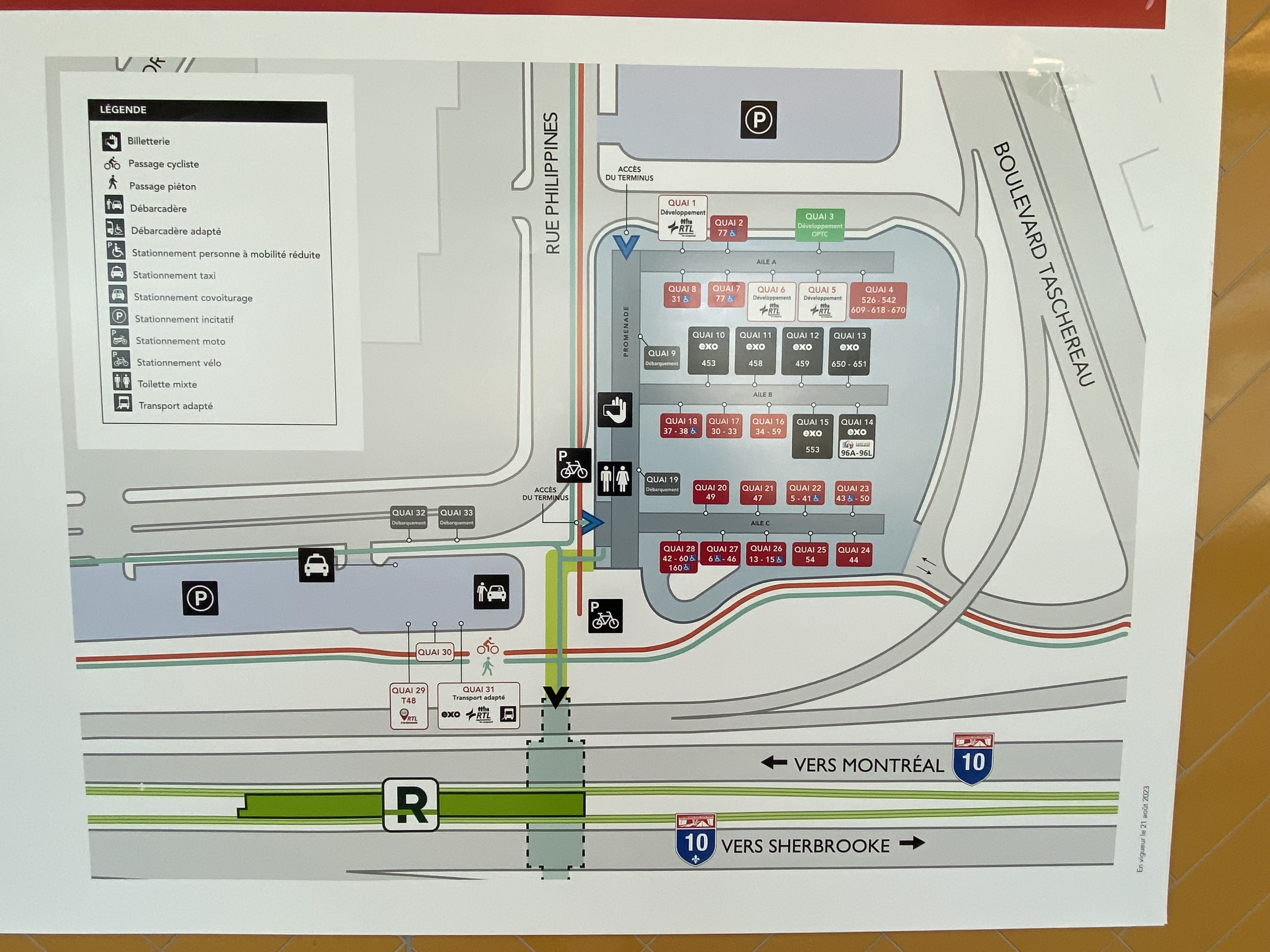 At Panama Station (named for a nearby street), the main transfer point between RTL buses and the REM (along with several local Exo buses to Saint-Constant and Delson), the disconnect between the separate transit facilities is apparent. The Panama Terminal is gigantic, with dozens of connecting buses.