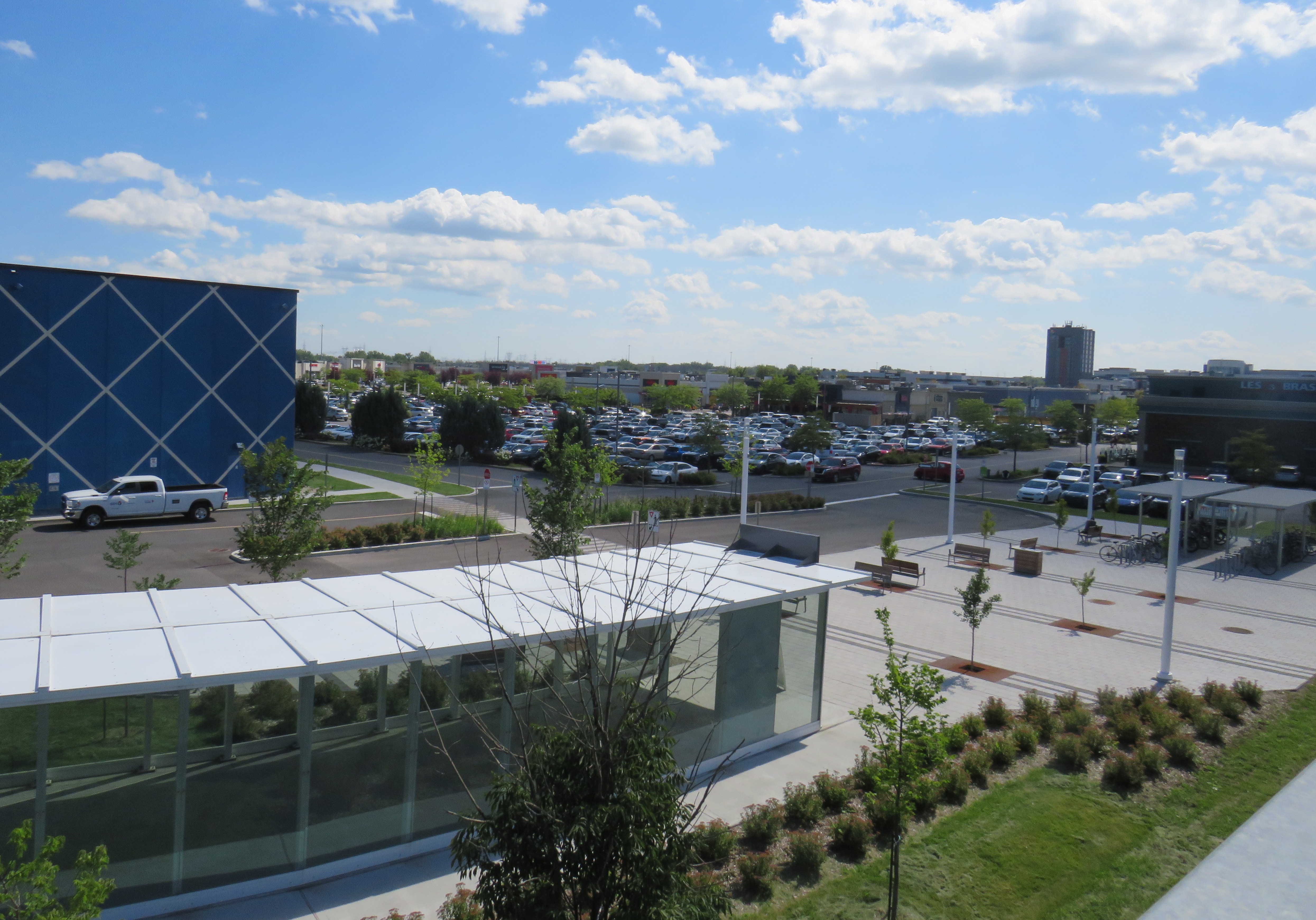 Despite the car-centric nature of Quartier DIX30, particularly the older southern half, there are opportunities for new urban development. On the east side of the REM station, this is already happening.