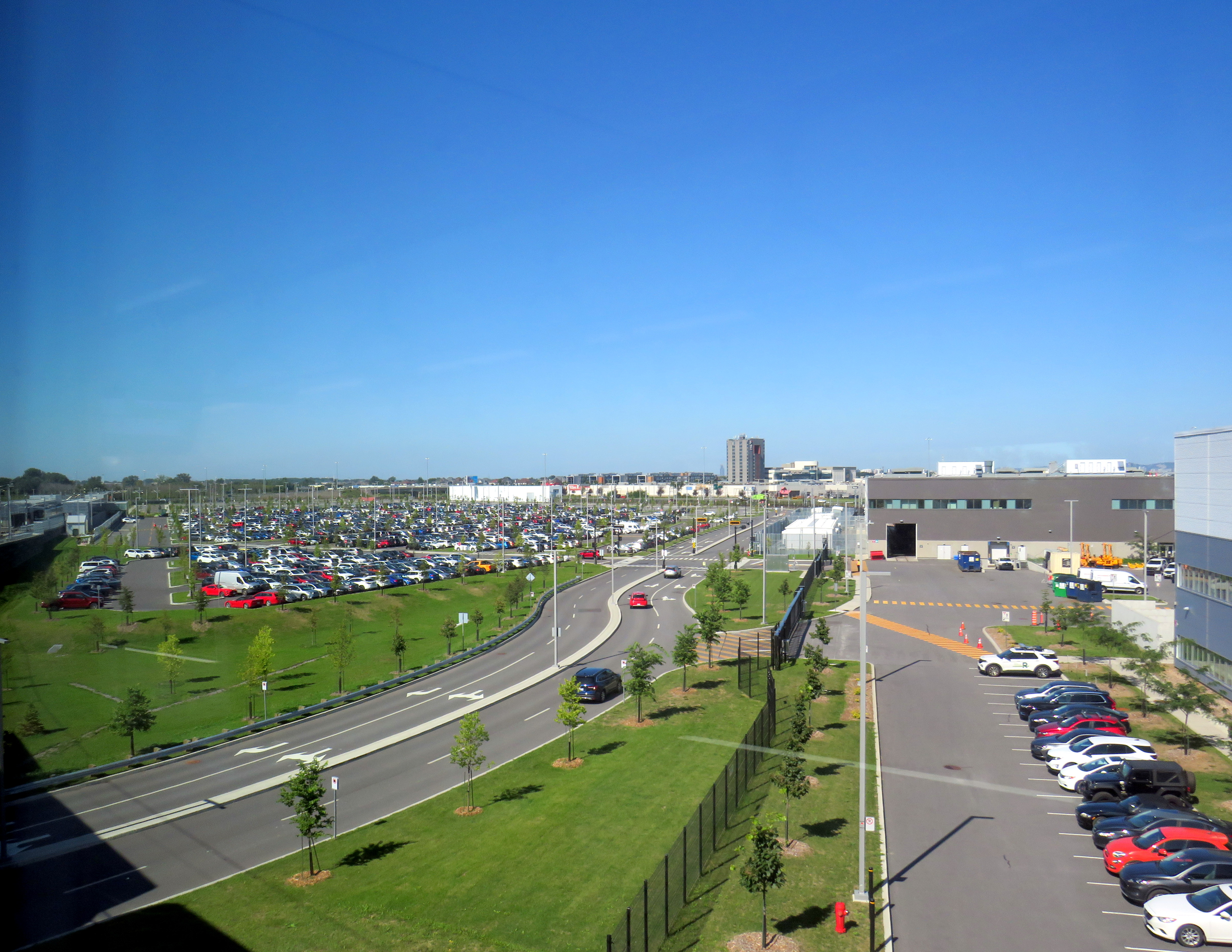 Brossard terminal, at the south end of the line, abuts the Autoroute 10/30 interchange, and like many suburban GO Transit stations, the station property’s most prominent feature is a massive parking lot, with space for 2,950 vehicles, including reserved paid spots and carpool lots, both close to the station’s front entrance. Next to the parking area is the main REM maintenance and storage facility. On the other side of the station is a large bus terminal, mostly serving Exo local and commuter routes to suburbs like La Prairie and Saint-Constant, and outlying towns such as Chambly and Mont-Saint-Hilaire. New highway ramps provide easy access to the bus terminal and parking lot. Given the limited development opportunity of the immediate area (constrained by highways and hydro corridors), I have few complaints about the location or layout of this terminal station.