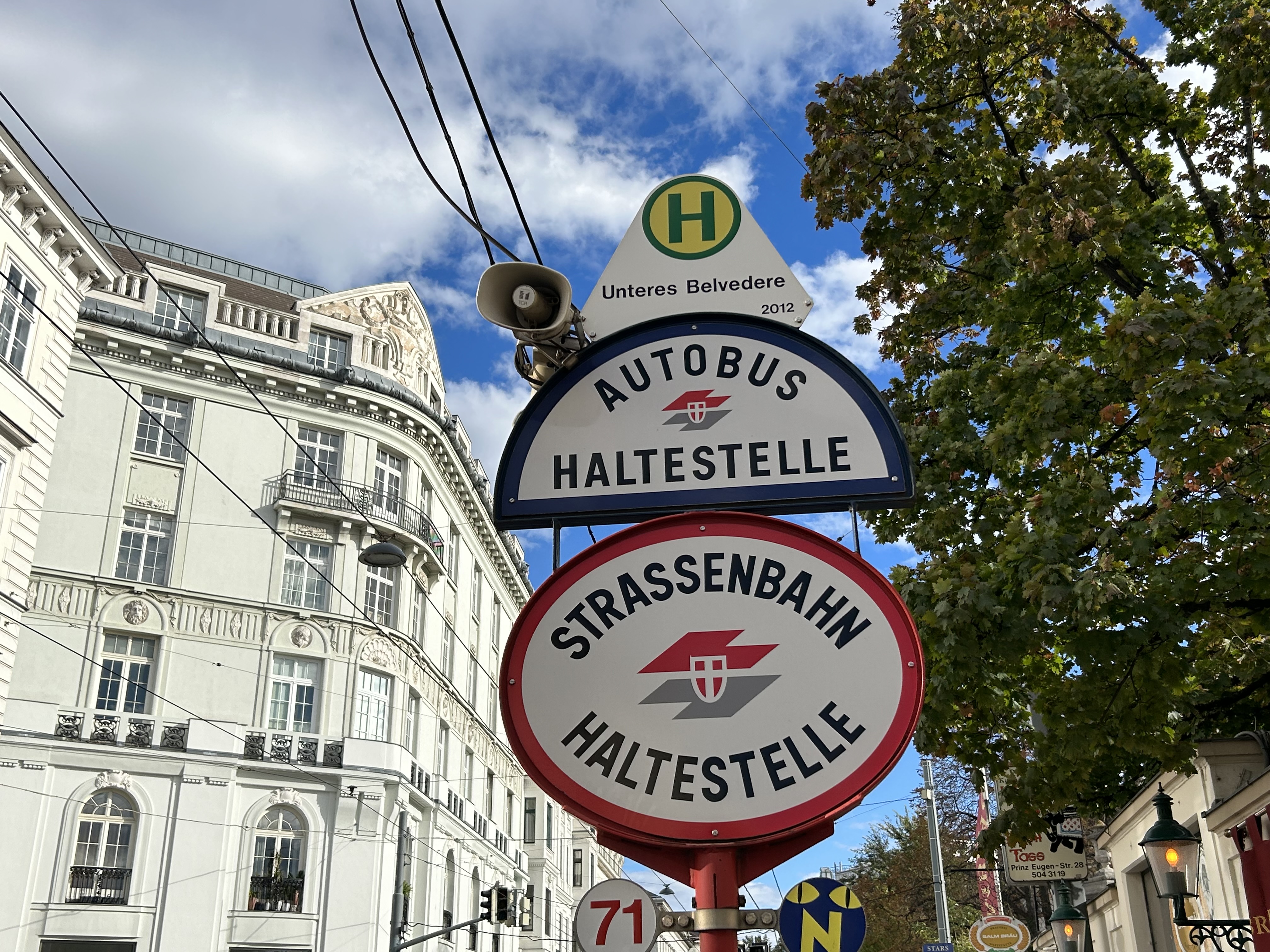 For instance, while waiting for a tram in Vienna, we experienced an unusually long wait. The next tram display kept showing the next two arrivals at 3 and 4 minutes. Not long after, a voice came on a loudspeaker posted above the tram stop sign announcing (in German, translated in English to us by one of my spouse’s colleagues) a delay because of a collision along the route. The blockage cleared after a few minutes, and we boarded a crowded tram. I appreciated the audio announcement, especially as it was a basic tram stop.