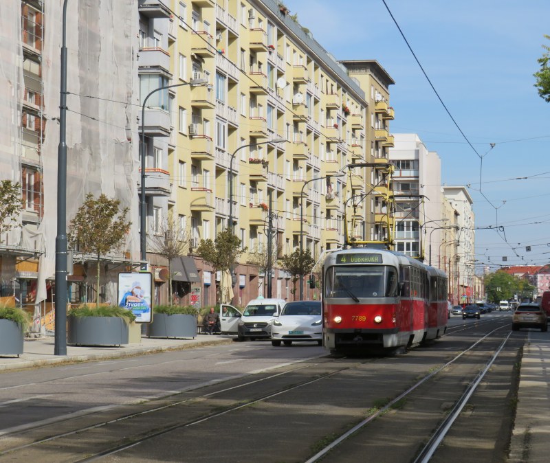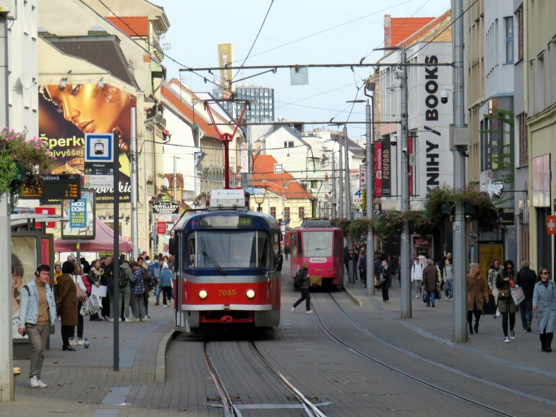 Bratislava, just over one hour away from Vienna by train (or by catamaran), is served by a network of metre-gauge trams, trolley buses, and diesel buses, though trams predominate in the city centre. On Obchodná, several tram lines, pedestrians, cyclists, and the occasional delivery or emergency services vehicle share a narrow, but busy shopping street. It just works.