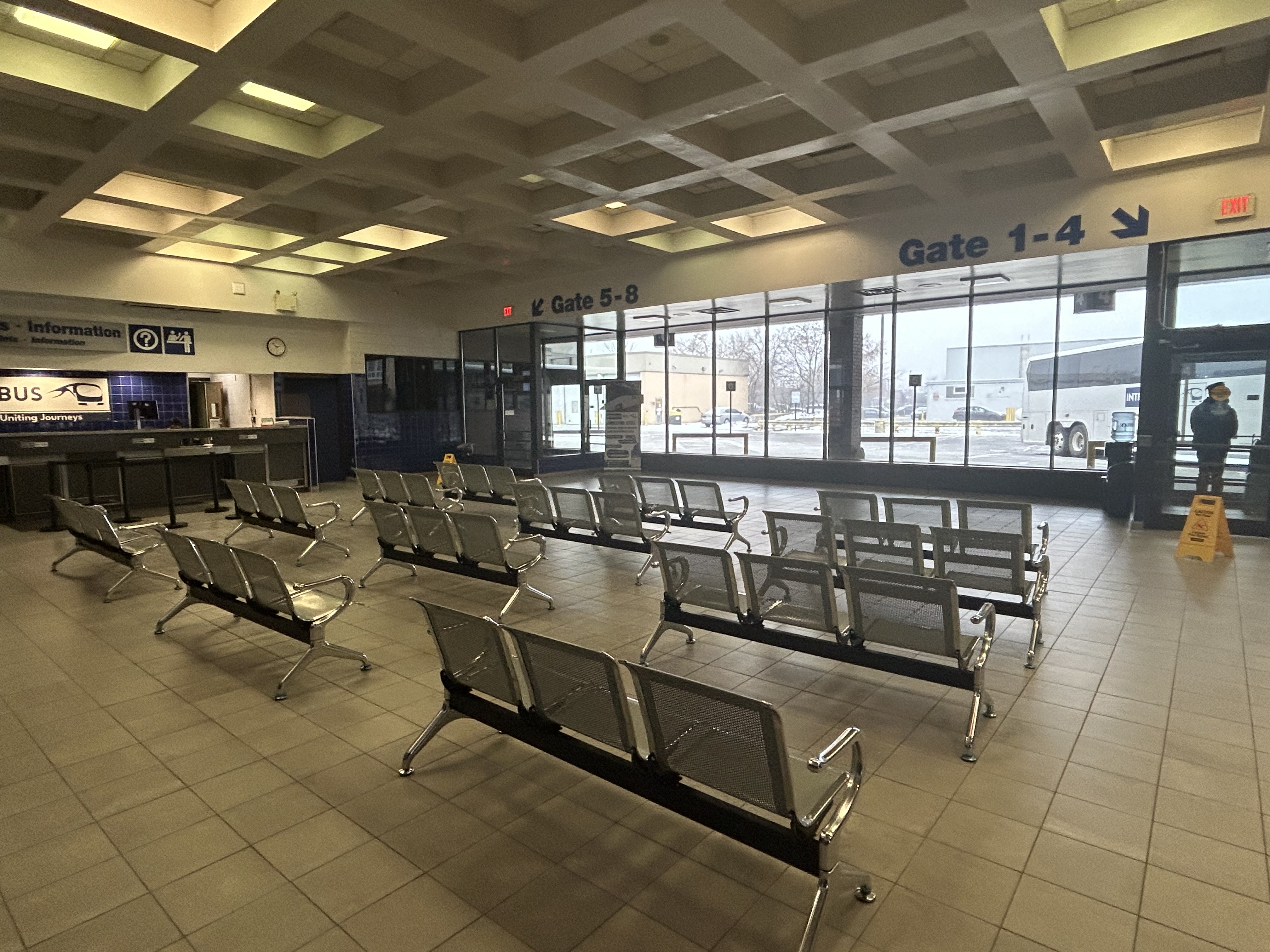 The terminal offers seating, washrooms, and is staffed by an agent, a rarity in the post-Greyhound world. The washrooms are especially essential if — as on my recent trip — the bus does not have an on-board lavatory. These new smaller carriers save fuel and labour costs by operating smaller vehicles and matching capacity with demand. They often operate older coaches and minibuses.