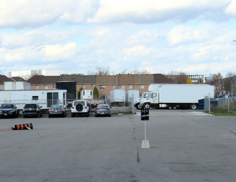 Outside the mall, much of the parking lot is fenced off and is now used for truck and trailer storage, and the storage of overflow rental car fleets. Though the rental car parking began during the COVID-19 pandemic, when people stopped travelling, it continues to be an easy revenue stream for the mall management. The truck trailers, on the other hand, are an unsightly feature, particularly where they face Highway 27.