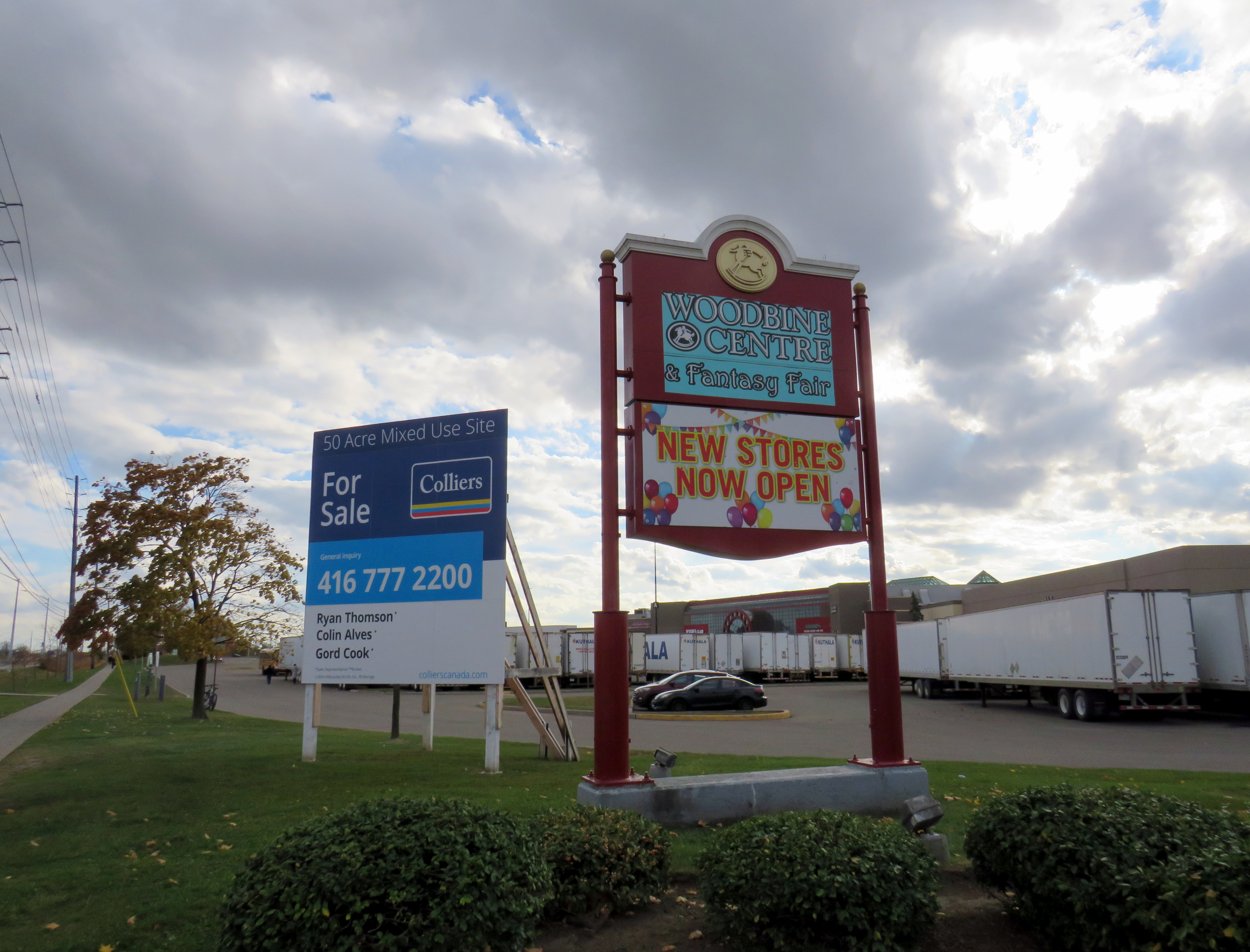 There was an attempt to renovate the mall, as part of a grand plan to revitalize the property with a new supermarket, refreshed food court, new entertainment options, and condominium towers surrounding the shopping centre. The Woodbine Village proposal competed with the better-financed Woodbine Live plans at the nearby racetrack, which included a casino, hotel, and event hall, all of which were built or are nearing completion. Condominium development is complicated as the property, particularly the southeast corner at Highway 27 and Rexdale Boulevard, is directly below the approach for Pearson Airport’s Runway 23.
