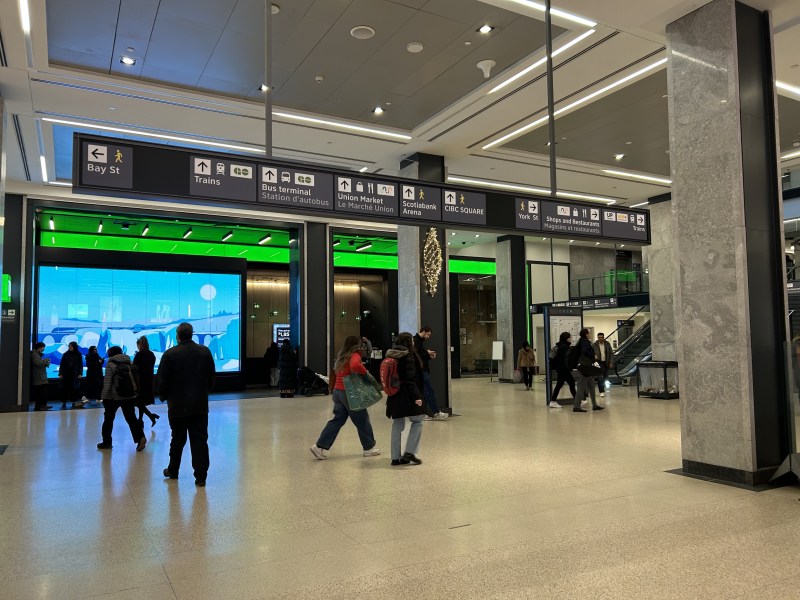 I am aware that there are particular challenges at Toronto Union Station — the City of Toronto controls only the common areas, such as the Great Hall, the retail areas, and the main entrances. Metrolinx, the agency responsible for GO Transit and UP Express, controls the York and Bay Concourses, as well as the UP Express station area. VIA Rail maintains its departures area. There are also heritage elements that need to remain intact, such as the Great Hall. But these issues of ownership and heritage preservation do not excuse the difficulty of getting around with a mobility device or even a wheeled bag.