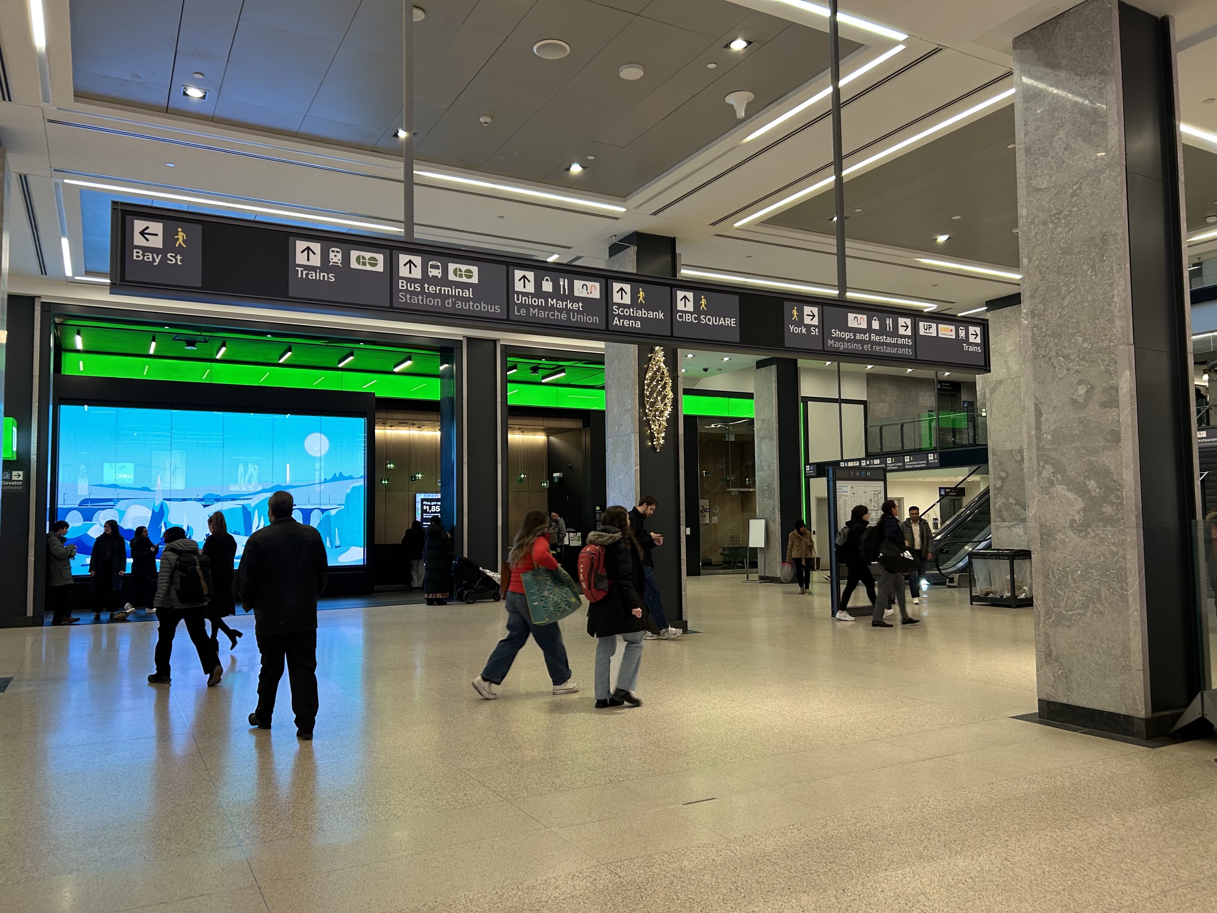 Despite new escalators and elevators, accessibility in Union Station remains poor. Though technically, the station is fully accessible to anyone using a wheelchair or other mobility device, the wayfinding is absent in key areas. There is only one small elevator that directly connects the subway level with the Great Hall, UP Express trains, and Front Street. An accessible route is also difficult to find.