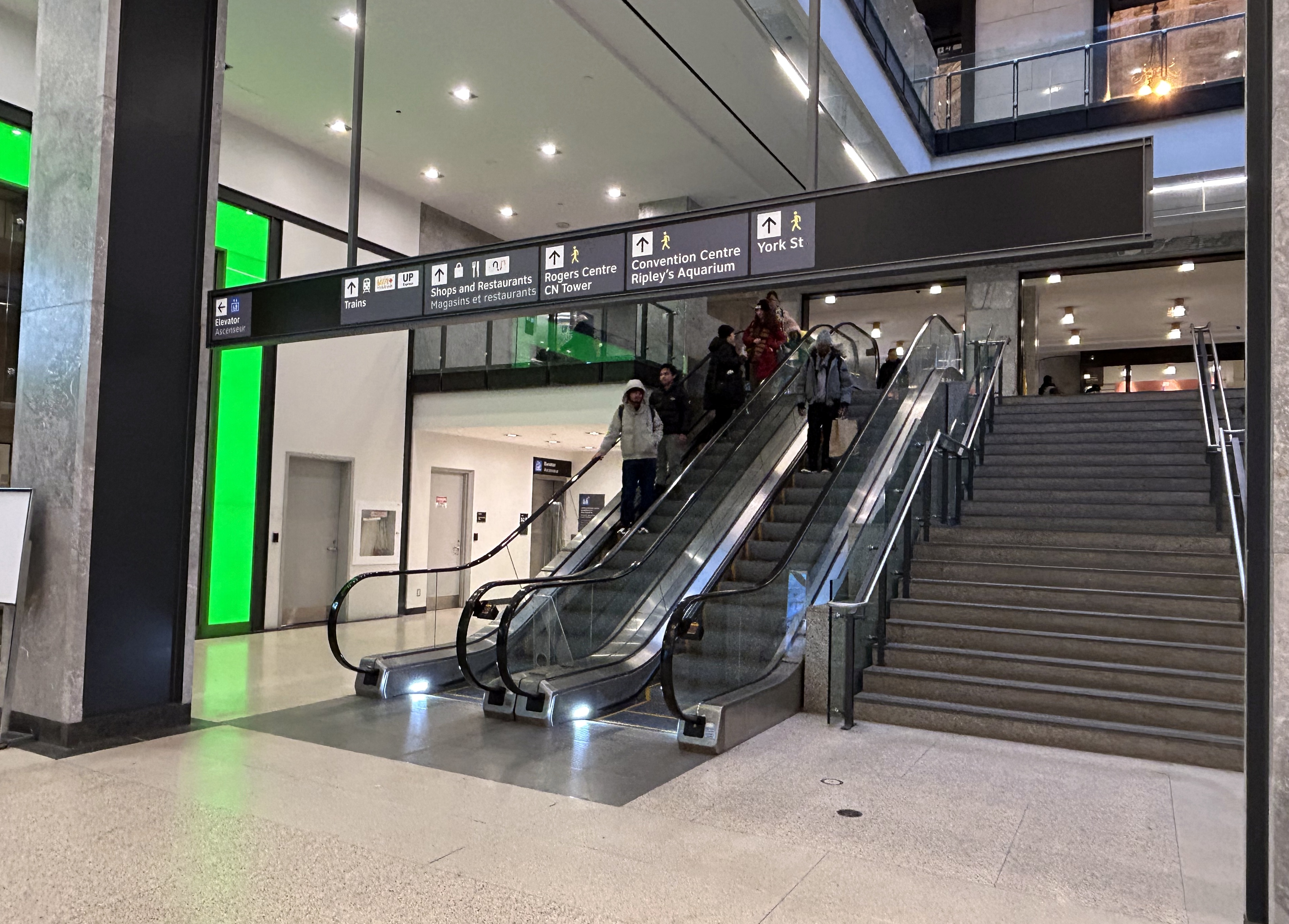 Whenever I travel through an international airport — Toronto Pearson is a good example — I never have to think too hard about where the accessible routes are. Escalators are easy to find. There are banks of two or three large elevators in strategic locations on the ground side of airports, connecting departure and arrival areas, as well as ground transportation facilities. As Canada’s busiest transport hub — busier than Toronto Pearson Airport even — Union Station’s elevators and escalators should be plentiful and easy to find.