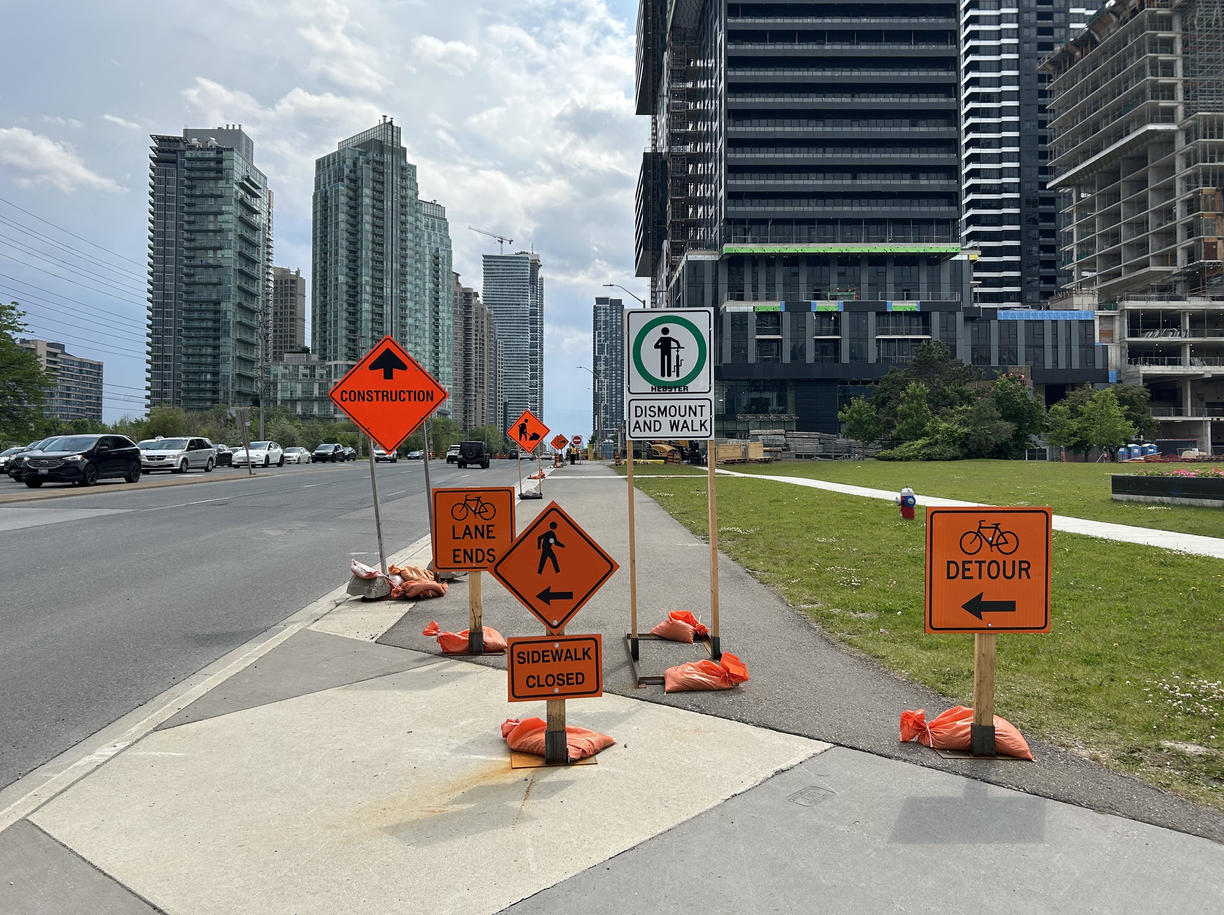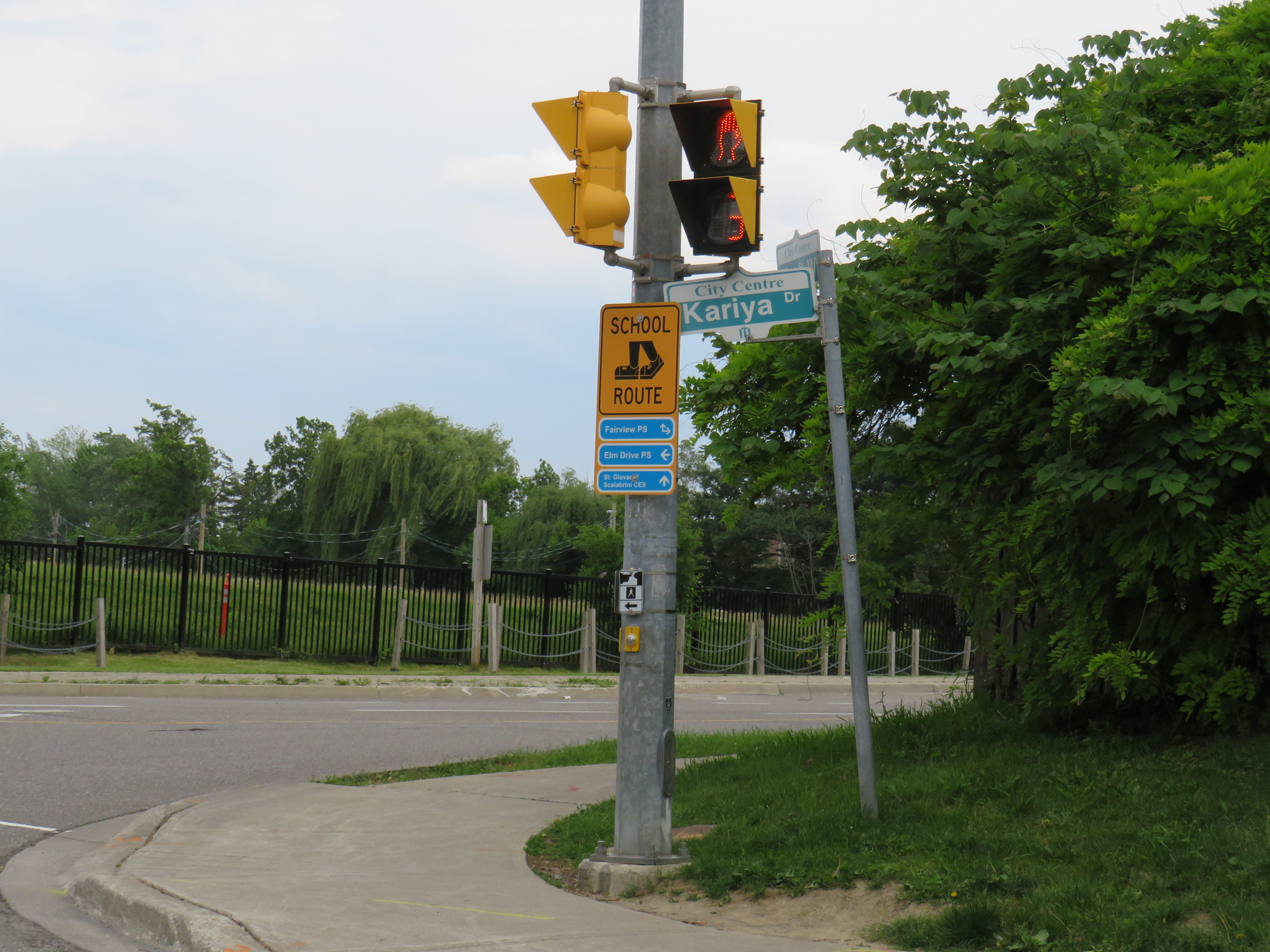 Also worth noting is that Kariya Drive is a signed school route. MCC itself does not have any elementary or secondary schools, but there are several schools within a short walk to the south of Burnhamthorpe, including Fairview Public School, Elm Drive Public School, St. Giovanni Scalabrini Catholic School, and Fr. Michael Goetz Catholic High School. The more people move into MCC, the more necessary safe walking routes will be.