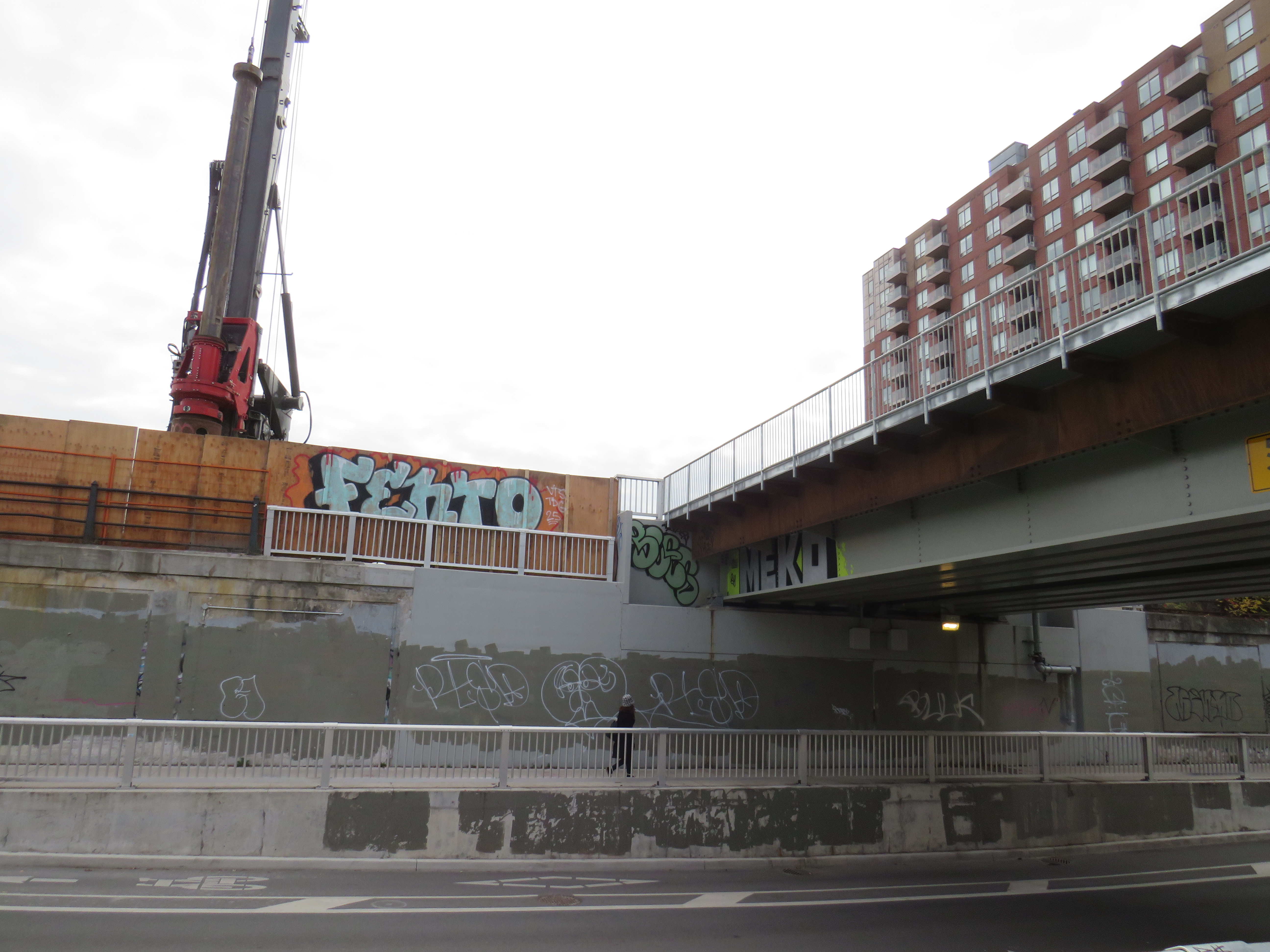 But Bloor-Lansdowne, located next to a former Value Village, will feature a subway-train transfer worse than the current connection between Bloor GO and Dundas West subway station. It took me nearly 7 minutes to get from the Lansdowne subway platform to the planned main entrance below the rail overpasses, including waiting at the Bloor-Lansdowne intersection for a walk signal, and crossing an unsignalized intersection at St. Helens Avenue. (See video below.)