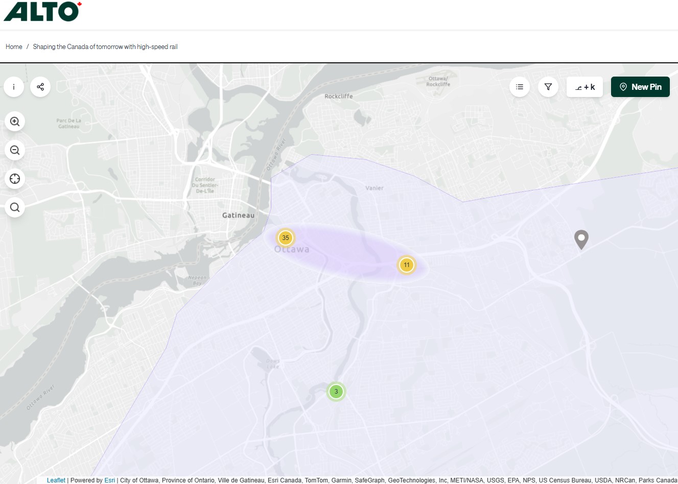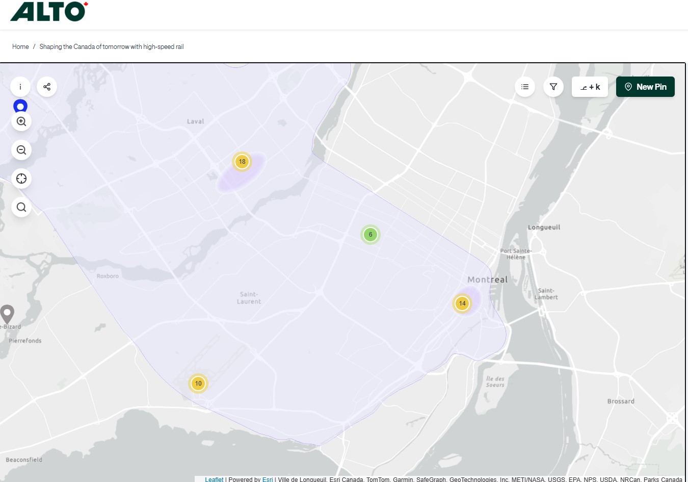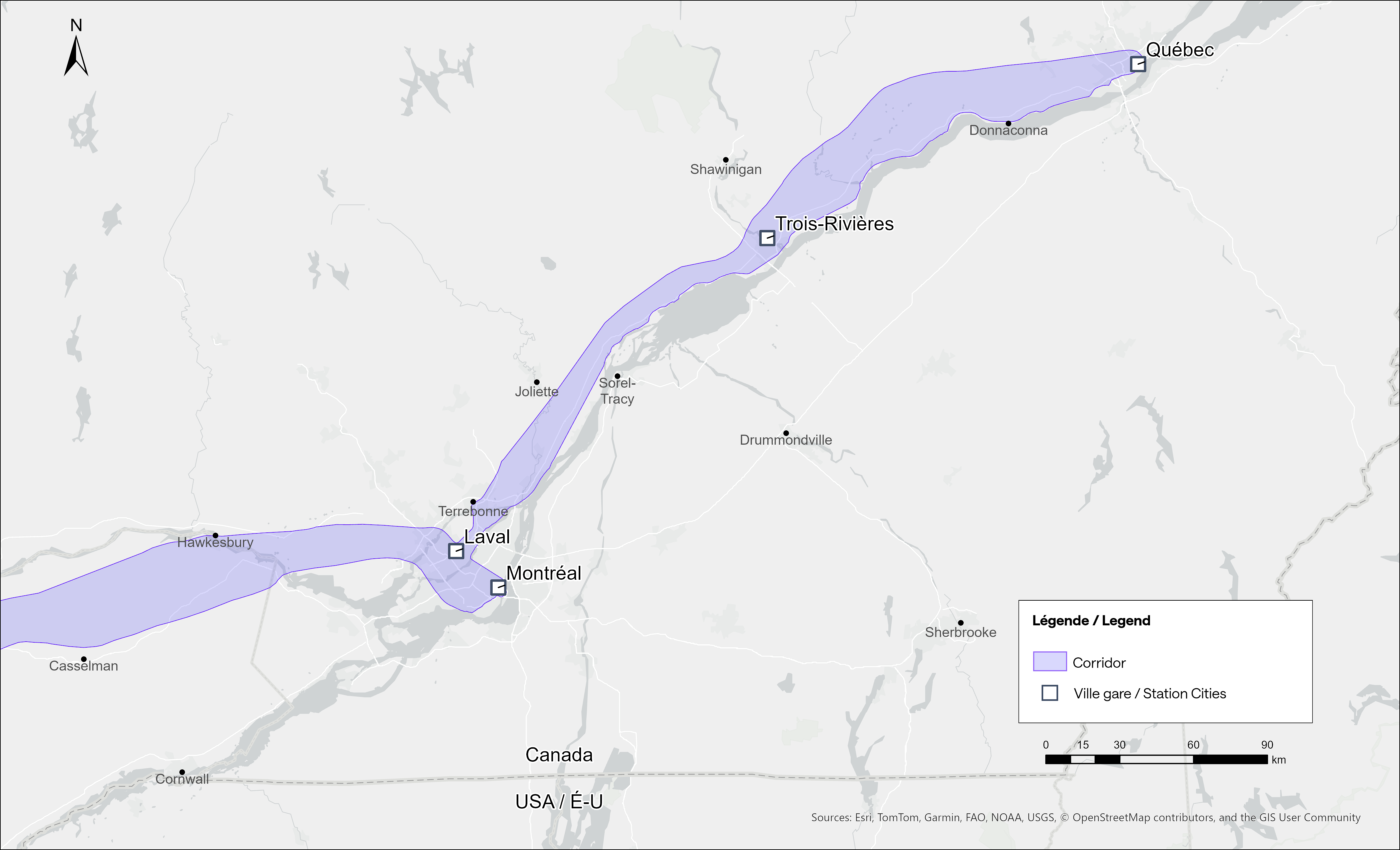 The Alto high speed rail line project, now in the planning stage, will connect Québec, Montréal, Ottawa, and Toronto, with a total of seven stations (the other three are planned in Trois-Rivières, Laval, and Peterborough). The first segment, with the start of construction set for 2029, will link Montréal, Laval, and Ottawa. Consultations on the specific route and station locations are underway, with the broad corridors noted in maps available on the Alto website.