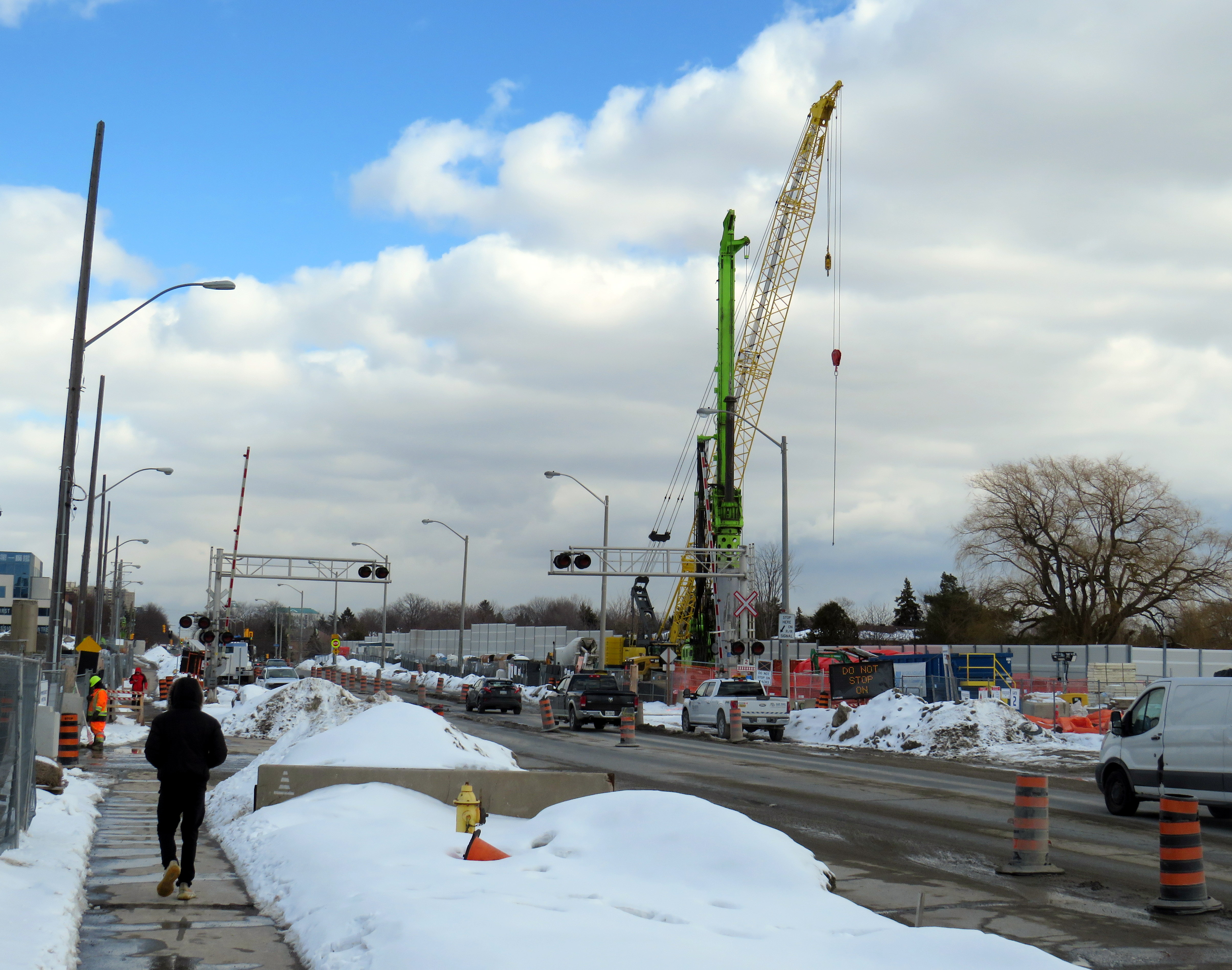 On Finch Avenue East in Scarborough, where the busy roadway meets the GO Stouffville Line, one will encounter a major construction project. Cranes and pile drivers line the railway crossing, with dozens of construction workers busy building a new grade separation between the rails and roadway. Once complete, the underpass will allow Finch Avenue traffic to pass unimpeded by more frequent GO train service and provide additional safety to all road users.