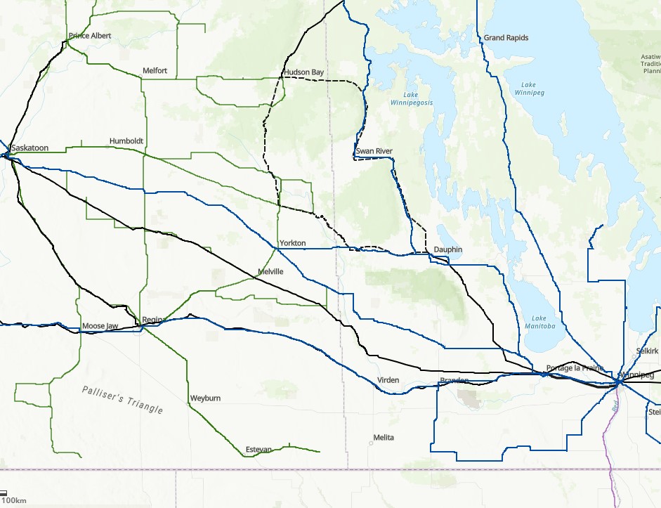 This map depicts intercity bus and rail connections in Canada in the decades prior to 2020. This map includes former Greyhound Canada routes, VIA Rail, Ontario Northland, BC Rail, and Algoma Central rail services cut since 1980, as well as “fallen flag” operators such as Saskatchewan Transportation Company, Grey Goose, Gray Coach, and Voyageur-Colonial.